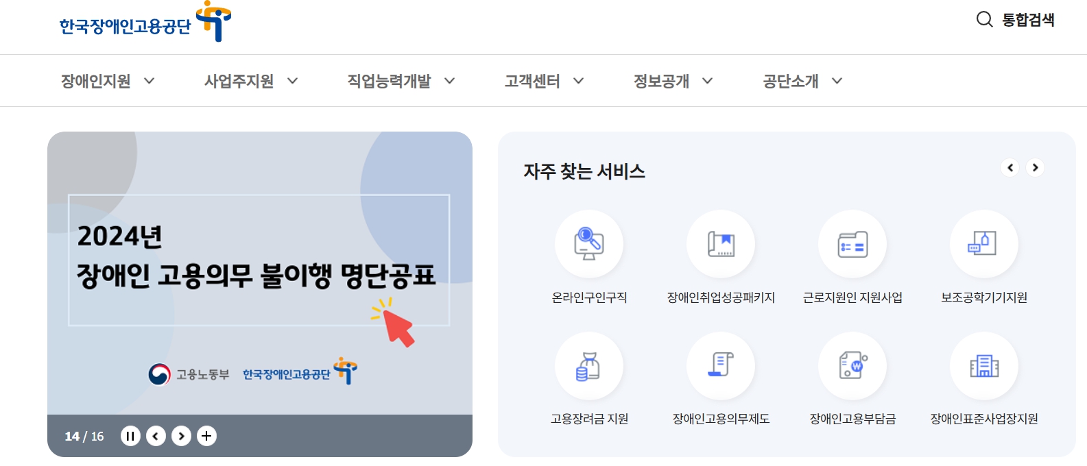 한국장애인고용공단 홈페이지의 주요 기능
