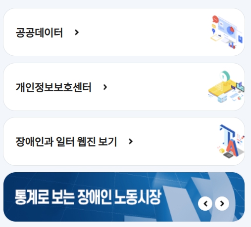 이러한 제도들은 장애인이 장기적으로 안정적으로 일할 수 있도록 돕는 중요한 기반이 되며, 홈페이지에서는 각 제도에 대한 소개, 신청 방법, 서류 안내까지 모두 확인할 수 있어 큰 도움이 됩니다.