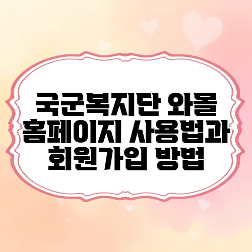 국군복지단의 와몰 홈페이지를 사용하고 회원가입하는 과정이 조금 낯설게 느껴질 수 있습니다. 하지만 걱정하지 마세요. 오늘은 국군복지단의 와몰 홈페이지 사용법과 회원가입 방법을 함께 알아보도록 하겠습니다. 이 정보는 국군복지서비스를 보다 효율적으로 활용하는 데 많은 도움이 될 것입니다. 아래에서 단계별로 설명해 드리겠습니다.