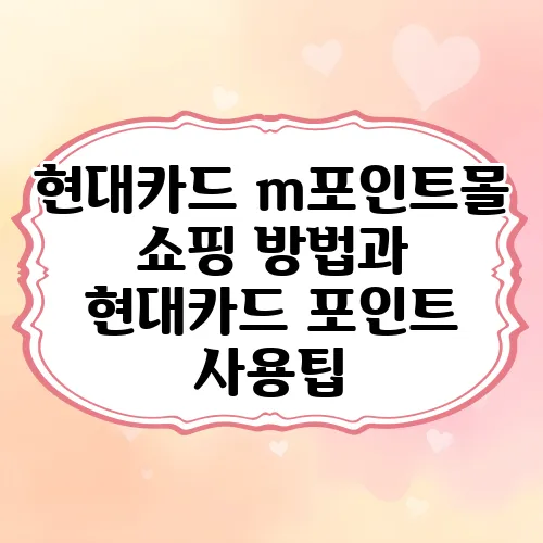 현대카드 m포인트몰은 현대카드 포인트로 쇼핑할 수 있는 최고의 공간입니다. 이곳에서 제공하는 장점들을 잘 활용하여 포인트를 효율적으로 사용해보세요. 현대카드 포인트 사용법과 m포인트 쇼핑 팁을 숙지하면, 소비 생활이 더 스마트해질 것입니다. 적립된 포인트를 통해 값진 상품을 저렴하게 구매하고, 다양한 혜택을 누리는 기회를 잡으시길 바랍니다!