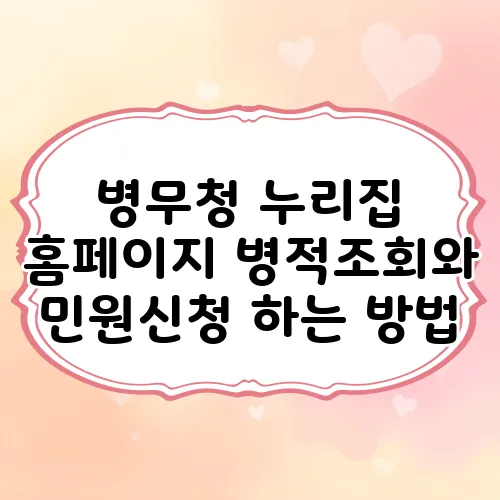 안녕하세요! 병무청 누리집 홈페이지를 통해 병적조회와 민원신청을 하는 방법에 대해 알아보겠습니다. 병적 확인은 군 복무와 관련된 중요한 정보입니다. 이는 병역 의무가 있는 모든 이들에게 필수적인 사항으로, 병무청 홈페이지를 이용하면 간편하게 조회 가능합니다. 그렇다면, 어떻게 병무청 홈페이지에서 이러한 정보를 쉽게 확인할 수 있는지 함께 알아보도록 하겠습니다.
