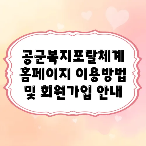 안녕하세요! 오늘은 공군 복지 포탈 체계의 홈페이지 이용 방법과 회원가입 안내에 대해 이야기해보겠습니다. 공군의 모든 구성원이 누릴 수 있는 다양한 복지 혜택을 쉽게 접근할 수 있도록 돕는 이 포탈은 매우 유용한 도구입니다. 그래서 이번 포스팅에서는 회원가입 방법과 홈페이지의 다양한 기능을 살펴보겠습니다. 아마 처음 이용해보시는 분들은 약간 헷갈릴 수 있겠지만, 차근차근 설명드리겠습니다!