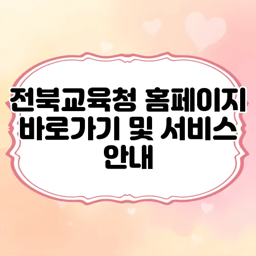 전북교육청 홈페이지 바로가기 및 교육 서비스 안내에 대해 깊이 탐구해보겠습니다. 전북교육청은 전라북도에서 교육과 관련된 다양한 정보를 제공하는 중요한 플랫폼입니다. 여기에서는 홈페이지에 쉽게 접근하는 방법과 함께 전북교육청이 제공하는 다양한 교육 서비스에 대해 자세히 살펴보고자 합니다. 이 글을 통해 전북교육청의 다양한 교육 서비스와 홈페이지 바로가기 방법을 명확하게 이해할 수 있을 것입니다. 이제 함께 전북 교육 정보의 세계로 들어가 보시죠!