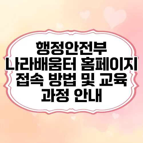행정안전부의 나라배움터는 국정 운영에 필요한 다양한 교육 과정을 제공하는 중요한 플랫폼입니다. 많은 분들이 이 홈페이지에 어떻게 접속하고, 제공되는 교육 과정은 무엇인지 궁금해 하실 것입니다. 그래서 오늘은 행정안전부의 나라배움터에 대한 접속 방법과 교육 과정에 대해 자세히 알아보도록 하겠습니다. 이 블로그 포스트를 통해 여러분이 원하는 온라인 교육을 손쉽게 받을 수 있는 방법을 이해하시길 바랍니다.