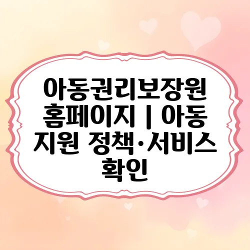 안녕하세요! 아동권리보장원 홈페이지에 대해 이야기해보겠습니다. 아동 지원 정책과 서비스는 우리 사회에서 매우 중요한 역할을 합니다. 아동의 권리가 보호받고, 적절한 복지를 누릴 수 있도록 돕는 다양한 정책이 마련되어 있습니다. 아동 권리 보호는 단순한 정책이 아니라, 모든 아동이 기본적이고 필수적인 권리를 누릴 수 있게 보장하는 일입니다. 그럼 아동권리보장원에서 제공하는 정책과 서비스에 대해 함께 살펴보도록 하겠습니다.