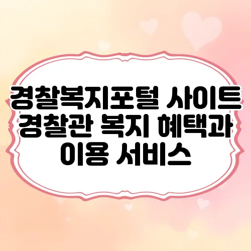 안녕하세요, 오늘은 경찰복지포털 사이트와 경찰관이 이용 가능한 다양한 복지 혜택에 대해 살펴보려고 합니다. 경찰관 분들께서 제공받을 수 있는 다양한 복지 서비스를 이해하고, 이를 어떻게 효율적으로 활용할 수 있는지를 알아보는 시간입니다. 특히 경찰관 복지 혜택이 어떻게 구성되어 있는지, 그리고 경찰복지 이용 방법에 대해 자세히 설명드리겠습니다. 함께 탐색해 보시죠!