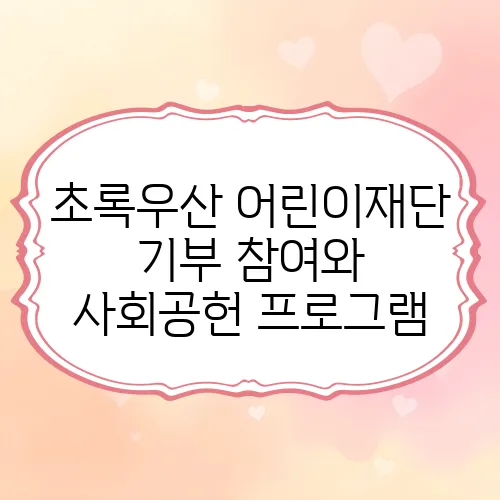 - 초록우산 어린이재단의 기부 참여와 사회공헌 프로그램을 통해 아동 복지에 기여해 보세요.