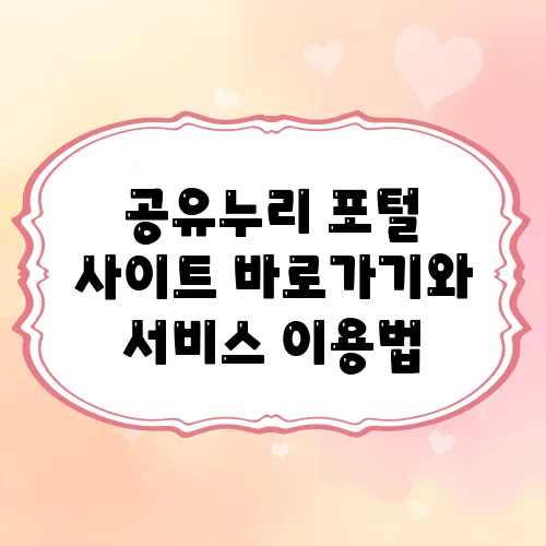 안녕하세요! 오늘은 공유누리 포털 사이트에 대해 알아보겠습니다. 이 포털은 우리에게 필요한 다양한 공공 자원 공유의 기회를 제공합니다. 공유누리를 통해 누구나 쉽게 자원과 서비스를 이용할 수 있는 방법에 대해 상세히 소개하겠습니다. 이 블로그 글을 통해 여러분은 공유누리를 효과적으로 이용하는 방법과 다양한 서비스에 대한 이해를 높일 수 있을 것입니다. 함께 살펴볼까요?