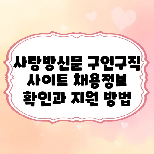 안녕하세요, 여러분! 오늘은 사랑방신문의 구인구직 사이트를 통해 채용정보를 확인하고 지원하는 방법에 대해 자세히 알아보도록 하겠습니다. 취업 정보는 변화하는 시장에서 많은 분들에게 큰 관심사인데요, 사랑방신문은 특히 지역사회에 밀접하게 관련된 직업 공급을 지원하고 있습니다. 이 포스팅에서는 사랑방신문의 구인구직 사이트를 활용하여 어떻게 여러분의 구직 활동을 성공적으로 이끌 수 있는지에 대해 알아보겠습니다. 그럼, 함께 시작해볼까요?