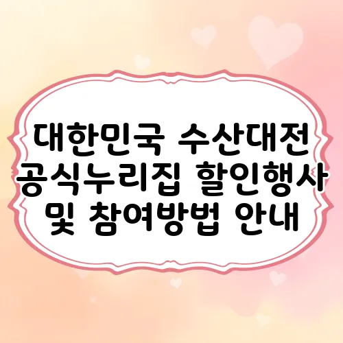 수산대전 공식 누리집에서 발급하는 할인 쿠폰도 꼭 활용하세요! 이를 통해 추가적인 할인 혜택을 누릴 수 있습니다.